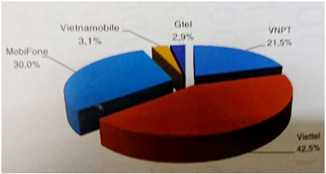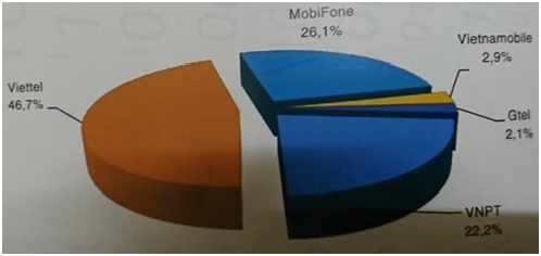 Thị phần (thuê bao) các doanh nghiệp cung cấp dịch vụ di động mặt đất phát sinh lưu lượng thoại, tin nhắn, dữ liệu (2G và 3G) của Việt Nam năm 2016 (Nguồn: Sách Trắng CNTT-TT Việt Nam 2017) Thị phần (thuê bao) các doanh nghiệp cung cấp dịch vụ di động mặt đất phát sinh lưu lượng thoại, tin nhắn, dữ liệu (3G) của Việt Nam năm 2016 (Nguồn: Sách Trắng CNTT-TT Việt Nam 2017)