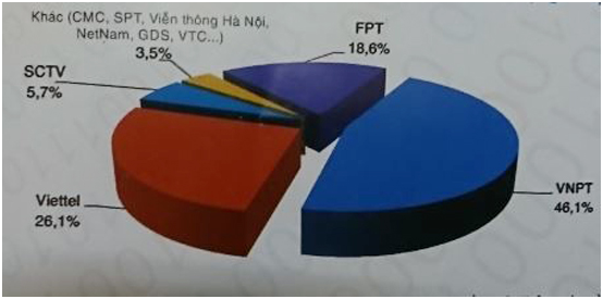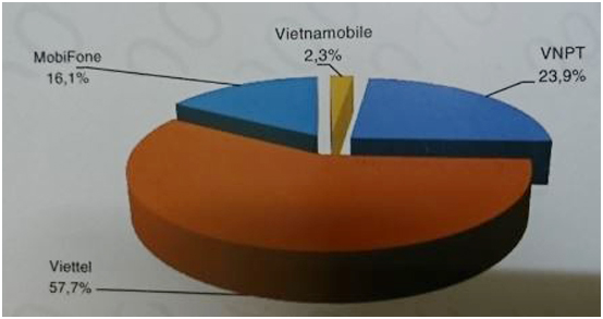 Trong đó, nếu xét riêng về thị phần (thuê bao) dịch vụ 2G, Viettel dẫn đầu, chiếm 42,5%; tiếp đó là MobiFone và VNPT, lần lượt nắm giữ 30% và 21,5% thị phần. Tương tự, đối với thị trường cung cấp dịch vụ 3G, năm 2016 số thuê bao di động 3G của mạng Viettel chiếm tới 57,7% tổng số thuê bao 3G, tăng hơn 16% so với năm 2013. Còn thị phần dịch vụ 3G của VNPT là 23,9%, tăng 1,4% so với năm 2013; thị phần dịch vụ 3G của MobiFone bị giảm từ 33,5% năm 2013 xuống còn 16,1% năm 2016. Về thị phần (thuê bao) của các doanh nghiệp cung cấp dịch vụ băng rộng cố định mặt đất, trong số các doanh nghiệp đang triển khai kinh doanh dịch vụ này, năm 2016, thị phần của VNPT vẫn lớn nhất, chiếm 46,1%; tiếp đó là Viettel, chiếm 26,1%; FPT chiếm 18,6%; SCTV chiếm 5,7%; và 3,5% thi phần dịch vụ băng rộng cố định mặt đất thuộc về các doanh nghiệp khác như CMC, SPT, NetNam, GDS, VTC…
